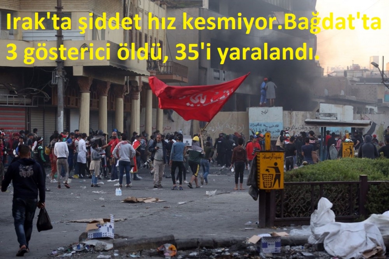 Bağdat İl Sağlık Müdürlüğünden isminin açıklanmasını istemeyen bir yetkili, AA muhabirine yaptığı açıklamada, Bağdat'ın merkezinde yer alan Ahrar ve Sinek Köprüsü yakınındaki protestolar sırasında güvenlik güçlerinin müdahalesi sonucu 3 göstericinin öldüğünü, 35'inin yaralandığını söyledi.