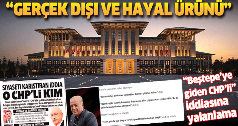 Sözcü başyazarı Rahmi Turan, CHP'li bir ismin Beştepe'ye giderek Cumhurbaşkanı Erdoğan ile görüştüğünü ve Erdoğan'ın söz konusu isme, 'Senin CHP Genel Başkanı olman gerekir' dediğini iddia etti. Rahmi Turan'ın bu iddiası İletişim Başkanlığı ve AK Parti'den yapılan art arda açıklamalarla yalanlandı. Asparagas haberleriyle tanınan Turan'a CHP yönetimi peşinen bel bağlasa da, Sözcü yazarının mesleki sicili hiç de parlak değil! İşte Turan'ın yalan haberlerinden birkaçı...
