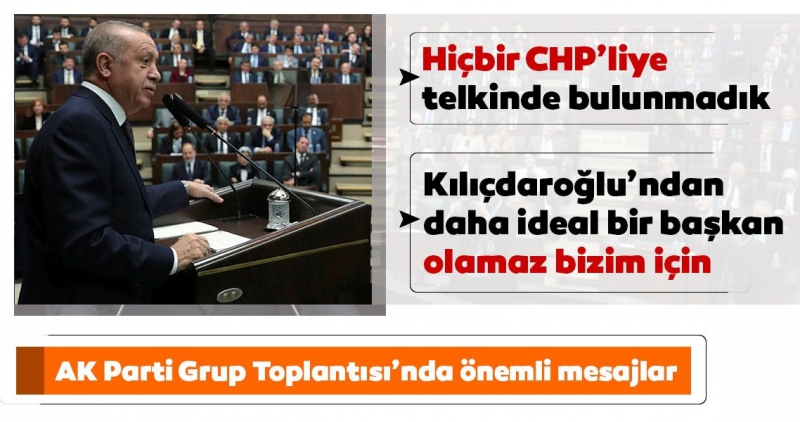 Son dakika haberi… Başkan Recep Tayyip Erdoğan AK Parti Grup Toplantısı’nda hitap etti. Başkan Erdoğan’dan “Külliye’ye çıkan CHP’li” yalanı hakkında sert sözlerle yüklendi. Yaşanan olayın ibret verici olduğunu ifade eden Erdoğan, “İddia edildiği gibi gizli saklı hiçbir CHP’li gelmedi. Hiçbir CHP'liye genel başkan olması yönünde telkinde bulunmadım, çünkü sayın Kılıçdaroğlu'ndan daha ideal bir genel başkan olmaz. CHP'nin başında kimin olduğundan bize ne? Bu CHP Genel Merkezi'ni, CHP'ye oy verenleri ilgilendirir.” dedi ve Kılıçdaroğlu, çıkıp delikanlıca ‘Hata ettim özür dilerim’ diyemedi” şeklinde konuştu. Öte yandan Erdoğan, CHP Grup Başkanvekili Engin Özkoç'un TBMM'de AK Parti’li Özlem Zengin'e sarf ettiği "haddini bildirin" sözlerine değindi ve "Şizofrenik vakalar sadece caddelerde değil parlamentonun içinde de var" açıklamasında bulundu. Vatandaşlara önemli bir çağrıda da bulunan Erdoğan, "Bırakın doları moları; paramıza, Türk Lirası'na dönelim. Türk Lirası artık kaybettirmiyor. Milliliğimizi, yerliliğimizi burada da gösterelim" ifadelerine yer verdi.