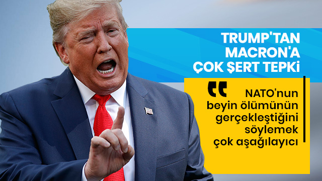 ABD Başkanı 'tan Fransa Cumhurbaşkanı 'un "’nun beyin ölümü gerçekleşti" açıklamasına tepki geldi. Trump, "NATO’nun beyin ölümü gerçekleşti demek oldukça küçük düşürücü.” dedi. Ayrıca Trump, "Türkiye ile iyi ilişkilerimiz var. Yeterince uzun süre sınırlarında kaldık, artık sınırlarından çekildik. İyi iş çıkarıyorlar" dedi ve "Erdoğan ile iyi anlaşıyorum, Türkiye çok iyi bir NATO üyesi" ifadelerine yer verdi..