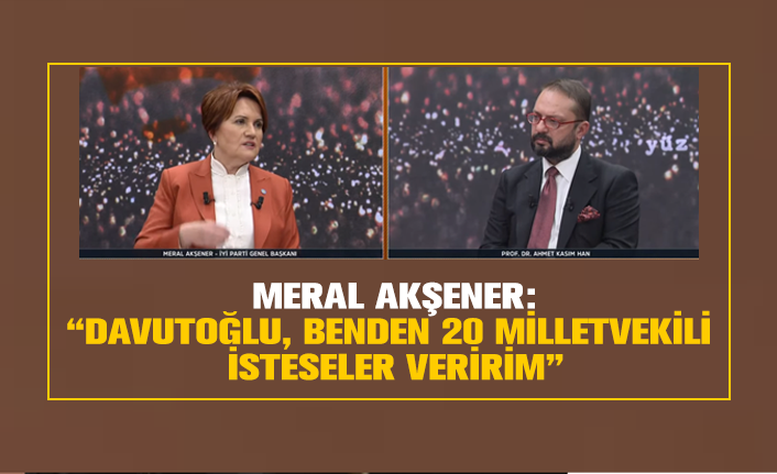 İYİ Parti Genel Başkanı Meral Akşener, katıldığı televizyon programında "Ahmet Davutoğlu ve Ali Babacan'ın kuracağı partiler sizden 20 milletvekili isterse, verir misiniz?' sorusuna "Biz böyle bir yoldan geçtiğimiz için elbette evet derim" şeklinde cevap vermişti.