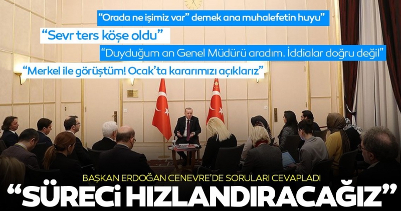 Başkan Recep Tayyip Erdoğan, İsviçre ziyaretini takip eden medya mensuplarına mülakat verdi. Libya mutabakatı ile ilgili açıklama yapan Başkan Erdoğan, "Türkiye-Libya arasındaki süreci daha da hızlandıracağız." dedi.