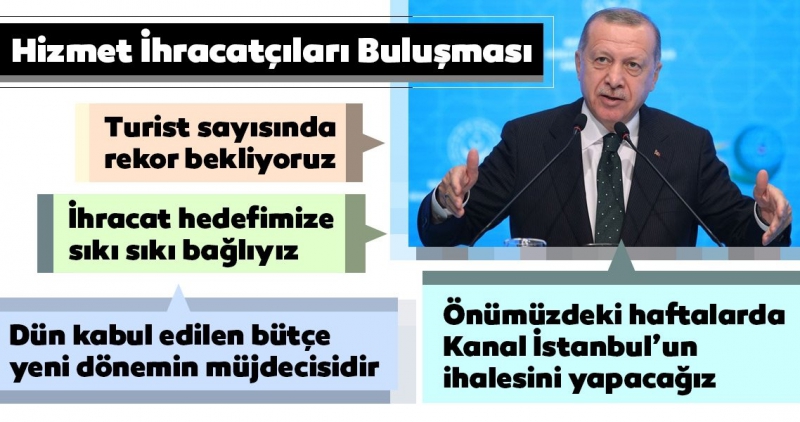 Cumhurbaşkanı Erdoğan, 2018 yılı Hizmet İhracatçıları Buluşması(HİB) töreninde konuştu. Kanal İstanbul ile ilgili açıklama yapan Cumhurbaşkanı Erdoğan, "Önümüzdeki haftalarda ihaleyi yapıp başlıyoruz." dedi. Erdoğan, "Şu anda ana muhalefetin başındaki zat biz Kanal İstanbul diyoruz, o yapamayacaksınız diyor. Sen ne yaparsan yap biz bunu yapacağız. Önümüzdeki haftalarda ihaleyi yapıyoruz ve Kanal İstanbul'a başlıyoruz" ifadelerini kullandı.
