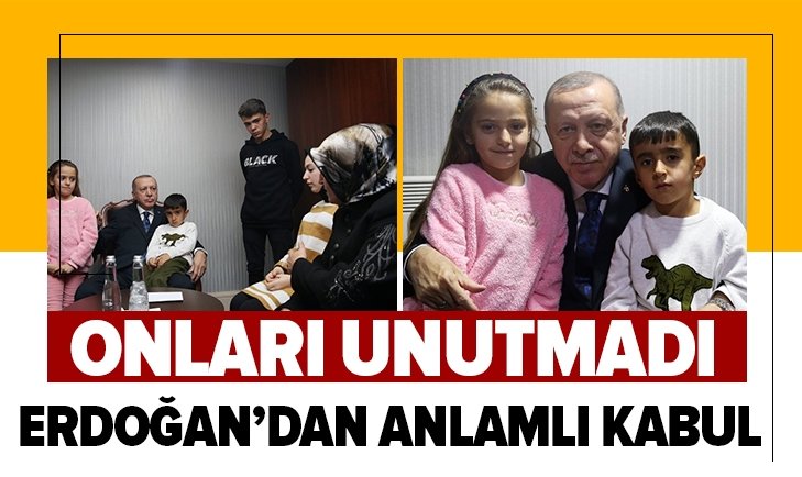 Başkan Erdoğan, Hakkari'nin Şemdinli ilçesinde PKK'lı teröristlerce şehit edilen Ahmet Budak'ın eşi ve çocuklarını kabul etti.