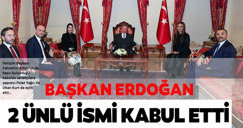 İletişim Başkanı Fahrettin Altun'un da hazır bulunduğu kabulde sanatçılara yapımcı Polat Yağcı ile Okan Kurt da eşlik etti.