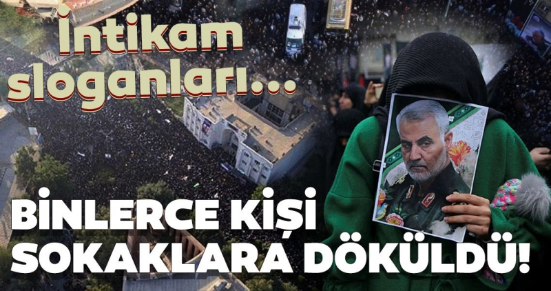 Binlerce kişi sokaklara dökülerek, 'ABD'ye ölüm' sloganları atıyor ve intikam için bağırıyor.