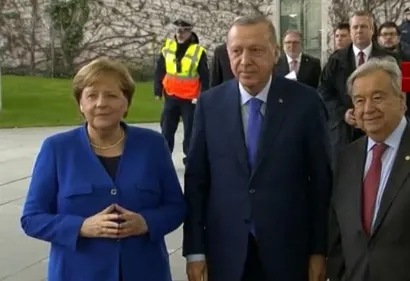 Bu fotoğraf birilerini rahatsız ediyorAlmanya'nın başkenti Berlin'de, Libya'daki savaşın tarafları General Halife Hafter ve Trablus'ta Birleşmiş Milletler'in meşru kabul ettiği hükümetin başkanı Fayez el Sarraj'ın ve bu isimleri destekleyen ülke liderlerinin bir araya geldiği zirve için nefesler tutulmuştu. Yaşanan son dakika gelişmelerine göre 12 ülkenin liderleri, Libya Konferansı'nın yapılacağı  için toplantının yapılacağı binaya geldi. Başkan Erdoğan da Angela Merkel tarafından karşılandı. İşte Berlin Zirvesi'nden canlı takip ve anbean yaşananlar;
