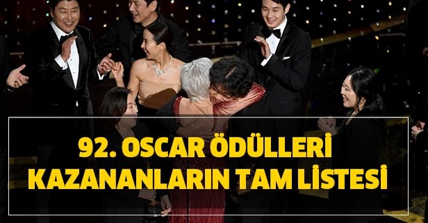 92. Oscar Ödülleri sahiplerini buldu. Los Angeles'taki Dolby Tiyatrosu'nda kırmızı halı geçidi sonrası Oscar kazananlar açıklandı. Güney Kore yapımı Parasite En İyi Film, En İyi Yönetmen (Bong Joon Ho), En İyi Uluslararası Film ve En İyi Orijinal Senaryo ödüllerini kazandı. 6 dalda aday olan ve 4 ödül kazanan Parasite, ilk kez İngilizce olmayan bir film olarak En İyi Film seçilmesiyle Oscar tarihine geçti. Oyunculuk ödüllerinde kazanan isimler sürpriz olmadı. En İyi Kadın Oyuncu, Judy filmiyle Renee Zellweger seçilirken, En İyi Erkek Oyuncu Oscar'ı, Joker filmindeki performansıyla Joaquin Phoenix'in oldu. Heath Ledger'dan sonra Oscar tarihinde ikinci kez Joker rolüne ödül verildi. En İyi Yardımcı Kadın Oyuncu, Marriage Story filmindeki performansıyla Laura Dern seçilirken, En İyi Yardımcı Erkek Oyuncu ise Brad Pitt oldu. Daha önce 12 Yıllık Esaret filmiyle yapımcı olarak Oscar kazanan Pitt, oyunculuk dalında ilk Oscar'ını aldı. İşte 2020 Oscar Ödülleri'ni kazananlar...