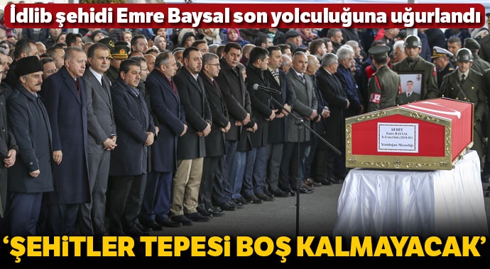 Cumhurbaşkanı Recep Tayyip Erdoğan, İdlib’de rejim unsurlarınca TSK güçlerine düzenlenen saldırıda şehit olan Uzman Çavuş Emre Baysal’ın cenaze törenine iştirak etti. Pendik’teki 15 Temmuz Şehitler Camisi’nde düzenlenen cenazeye şehidin acılı ailesi, yakınları, AK Parti Genel Başkan Vekili Numan Kurtulmuş, İstanbul Valisi Ali Yerlikaya, İstanbul Emniyet Müdürü Mustafa Çalışkan, Pendik Belediye Başkanı Ahmet Cin, Kartal Belediye Başkanı Gökhan Yüksel, askeri personeller ve emniyet mensupları ile çok sayıda vatandaş da katıldı.