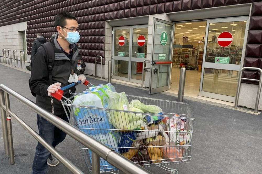 İtalya'da sokağa çıkan herkes birbirinden yeterli bir uzaklıkta durmaya çalışıyor. Kuyruklar genellikle uzak aralıklarla yapılmaya çalışılıyor.