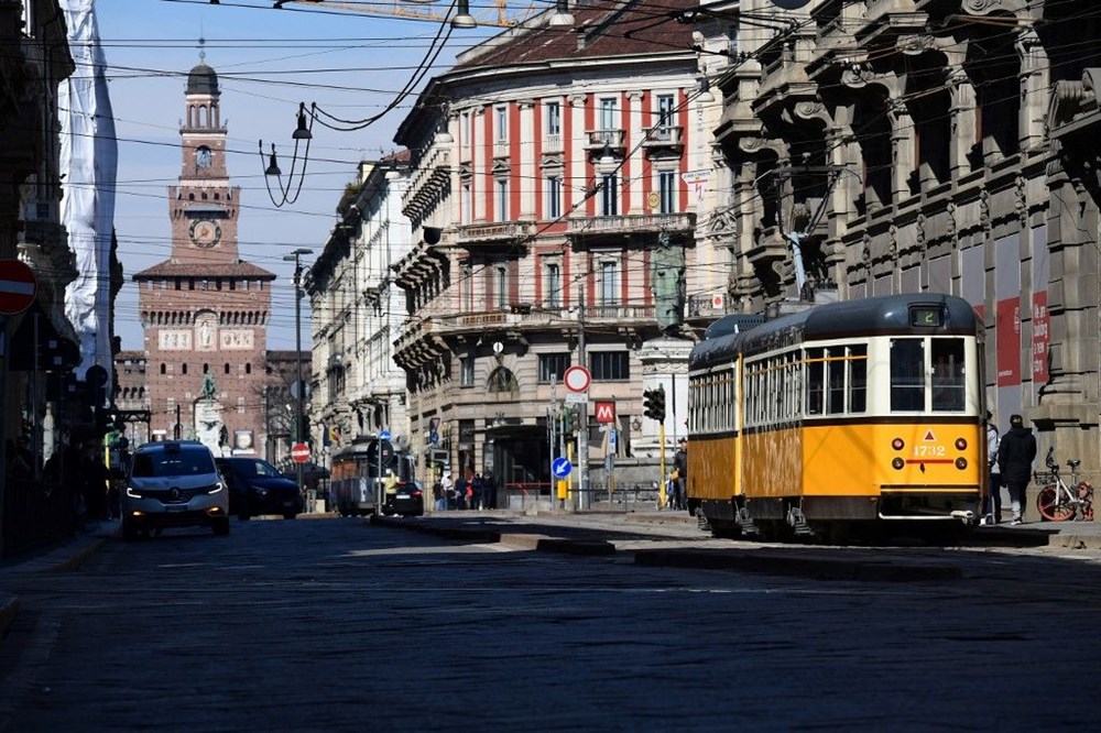 Turistik Garibaldi kapısının etrafında kimse yok. Milano'nun alışıldık kalabalığından eser kalmadı.