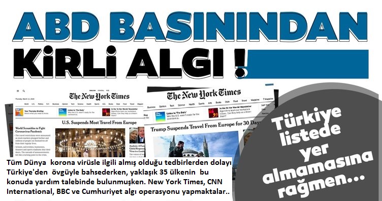 New York Times başta olmak üzere, BBC ve CNN International gibi medya kuruluşları koronavirüs üzerinden Türkiye hakkında algı operasyonu yaptı.