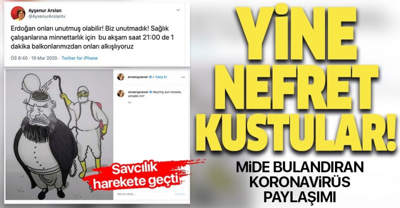 Ayşenur Arslan ve Enver Aysever gazetecilik kisvesi altında yaptıkları her paylaşım her yorumda heybelerinde daima tuttukları nefret ve kin ile hareket etmeye devam ediyor. Üstelik koronavirüs gibi 7 milyarı aşkın insanı tehdit eden bir salgında bile içlerindeki zehiri kusmaktan geri durmadılar. Aysever'in paylaşımıyla ilgili savcılık harekete geçerek soruşturma başlattı..
