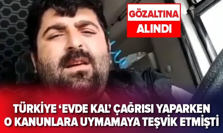 Koronavirüs tedbirleri kapsamında başta büyükşehirler olmak üzere  genelinde "Evde Kal" çağrılarına uyuldu.  isimli TIR şoförü 'evde kal' çağrısına karşı gelerek sosyal medyadan provokatif söylemler içeren bir video paylaştı.  İskenderun İlçe Emniyet Müdürlüğü, söz konusu videodaki açıklamaları nedeniyle Yılmaz'ın "Kanunlara Uymamaya Teşvik" suçundan gözaltına alındığını duyurdu.
