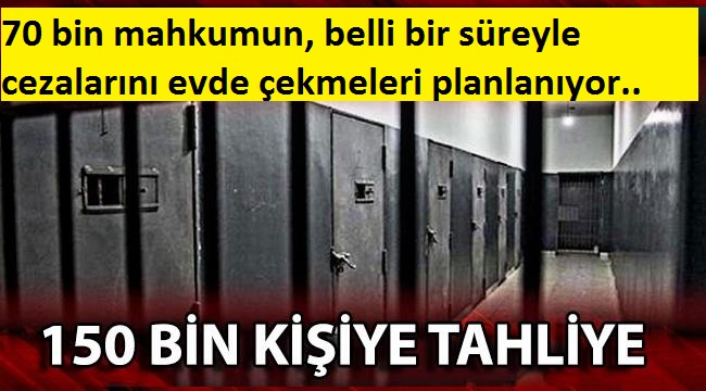 Son dakika haberine göre 'ye bu hafta sevk edilmesi beklenen infaz düzenlemesine geçici madde konularak, açık cezaevlerinde kalan 70 bin mahkumun, belli bir süreyle cezalarını evde çekmeleri planlanıyor.