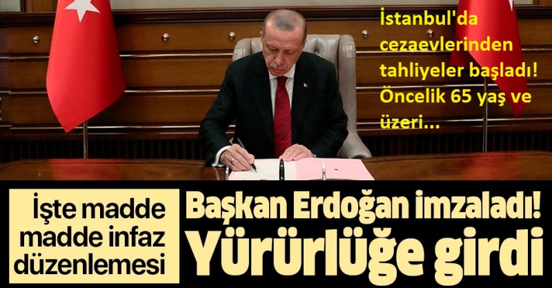 Başkan Recep Tayyip Erdoğan'ın onayladığı yeni yasa Resmi Gazete'de yayımlandı. AK Parti ve MHP gruplarının ortak hazırladığı infaz düzenlemesine ilişkin kanun teklifi, TBMM Genel Kurulunda kabul edilerek yasalaşmıştı.