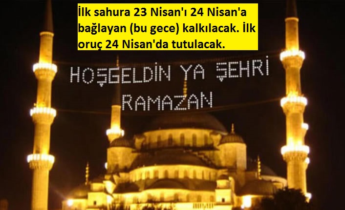 23 Nisan Perşembe gecesini, 24 Nisan Cuma'ya bağlayan gece ilk sahura kalkılacak. Yani 24 Nisan'da milyonlarca kişi oruçlu olacak.