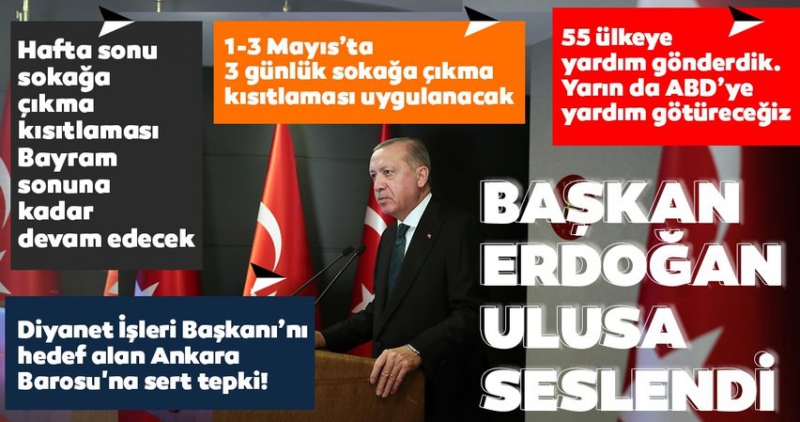 Bu hafta sonu 3 gün süreyle sokağa çıkma kısıtlamasını uygulayacağız. 1 Mayıs-3 Mayıs'ta sokağa çıkma sınırlandırılmasına vatandaşlarımızın riayet etmesini istiyoruz. Cumartesi günü saat 14.00'e kadar marketler açık olacaktır.