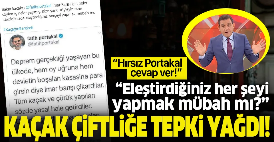 Portakal'ın Seferihisar'daki lüks çiftlik evinde 3 kaçak yapısı olduğu ortaya çıktı. Eşi Armağan Portakal ile birlikte Seferihisar'da 8 bin 394 metrekarelik tarla vasfındaki arsayı 2015'te alan Fatih Portakal'ın, hukuksuz bir şekilde 3 kaçak yapı kondurduğu tespit edildi. Portakal, Yılmaz Özdil'in villası için yaptığı gibi çiftliğin tapusunu eşi Armağan Portakal'ın üzerine çıkarttı. Çiftin 'Torlak Çiftliği' adını verdikleri ve 2015 yılında yerleştikleri araziyi telle çevirdiği, sonrasında da açık mutfak ve oturma alanlarında yasalara uygun olmayan şekilde yapılaşmaya gittiği kaydedildi.
