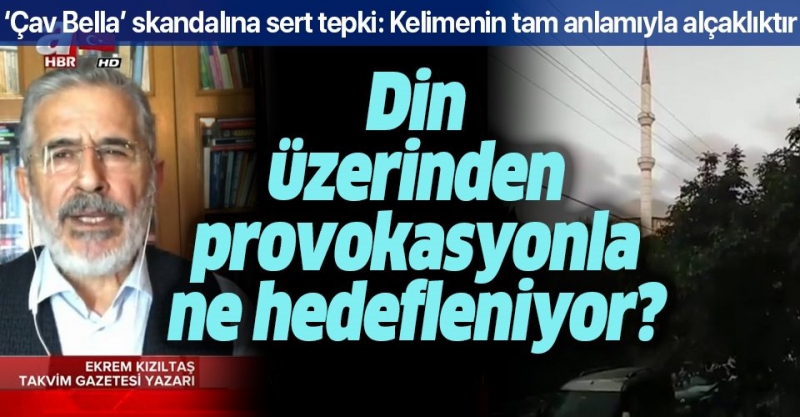İzmir'deki bazı ilçelerde bulunan camilerin hoparlörlerinden komünist devrim şarkısı 'Çav Bella'nın çalınmasına tepkiler gelmeye devam ediyor. A Haber canlı yayınına katılan Takvim Gazetesi yazarı Ekrem Kızıltaş, "Bu yapılan kelimenin tam manasıyla alçaklık." dedi. Kızıltaş, birilerinin dini konuları fay hattı olarak düşünüp insanları tahrik etmeye çalıştıklarını söyledi.