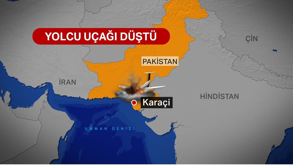 Pakistan Uluslararası Havayolları’na (PIA) ait yolcu uçağı, Karaçi kentindeki havalimanı yakınlarında, yerleşim yerlerine düştü.İslamabad Büyükelçisi Mustafa Yurdakul ülkede yaşanan feci kazanın ayrıntılarını A Haber ekranlarında anlattı. Yurdakul, uçakta Türk yolcusunun olmadığını aktardı.Pakistan Uluslararası Havayolları'na (PIA) ait Lahor-Karaçi seferini yapan Airbus A-320 tipi yolcu uçağı, Karaçi kentindeki havalimanı yakınlarında, yerleşim yerine düştü. Yerel medya, uçakta 90 yolcunun, 8 mürettebatın bulunduğunu duyurdu. Kazadan kurtulan olup olmadığının henüz bilinmediği aktarıldı. Öte yandan, uçağın düştüğü noktaya çok sayıda itfaiye ve ambulans sevk edildiği bildirildi. PIA Sözcüsü Abdullah Hafeez, "Şu anda bir şey söylemek için erken. Dualarım ailelerle birlikte. Şeffaf bir şekilde bilgi paylaşmaya devam edeceğiz" ifadelerini kullandı.