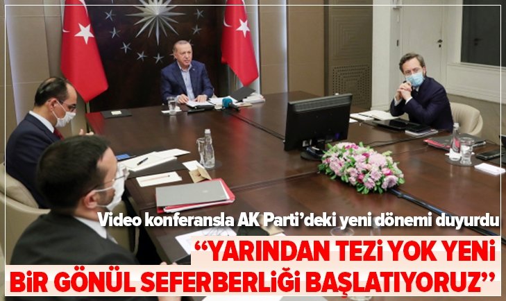 Cumhurbaşkanı Erdoğan, "Yarından tezi yok, yeni bir gönül seferberliği başlatıyoruz. Sokağa çıkma kısıtlaması günlerinde telefonla ulaşarak, çarşambadan itibaren de bizzat sahaya inerek, milletimize gidecek kendimizi anlatacak, onun da derdini dinleyeceğiz." dedi.