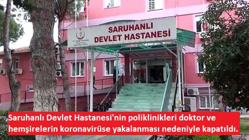 Saruhanlı Devlet Hastanesi'nin poliklinikleri doktor ve hemşirelerin koronavirüse yakalanması nedeniyle kapatıldı.