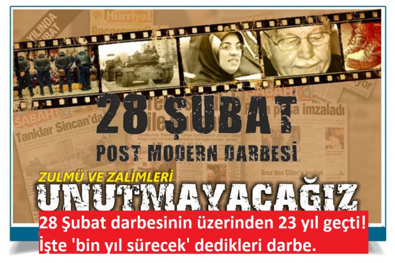 Türkiye tarihine "postmodern darbe" olarak geçen ve toplum ile siyaset üzerinde derin postal izleri bırakan 28 Şubat'ı geride bırakalı 22 yıl oldu. Kadınların başörtüsü olduğu için okullara sokulmadığı, dinini vecibelerini yerine getirmek isteyen insanların adeta kamusal alandan silindiği, var olan toplumsal düzeni korku ve tehlike mantığına endeksleyen kararların kağıda döküldüğü günün adıdır 28 Şubat..