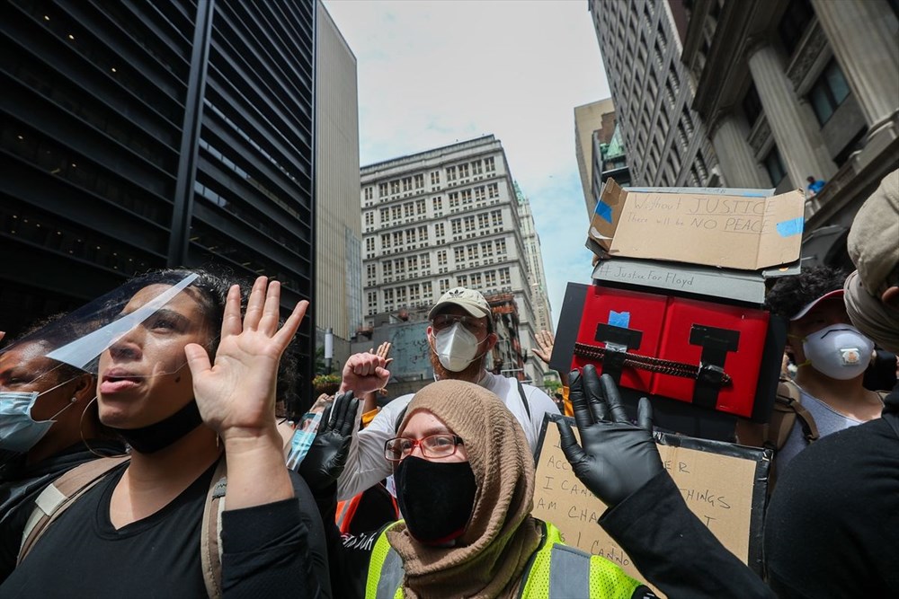 Yaklaşık 15 bin kişi, Floyd'un ölümüne ve ülkedeki polis şiddetine karşı sloganlar atarken, gösterilere katılımın diğer günlere kıyasla daha fazla olması göze çarptı.