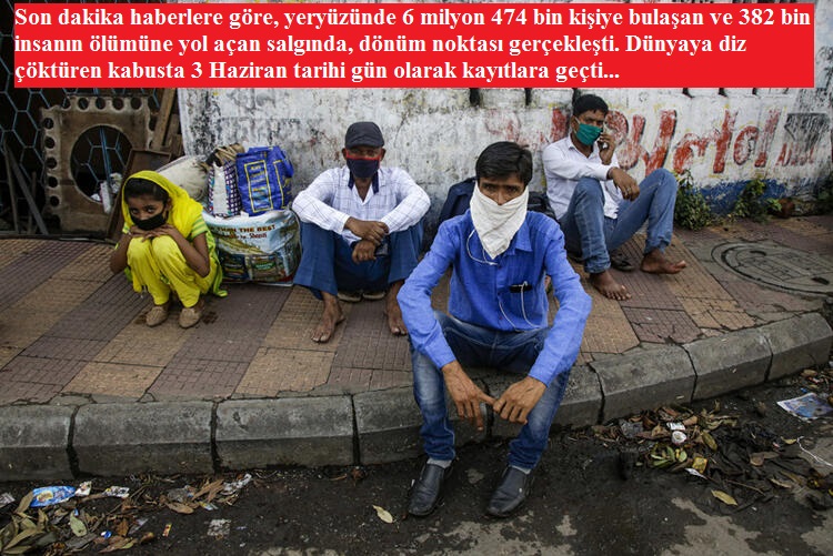 Son dakika haberlere göre, yeryüzünde 6 milyon 474 bin kişiye bulaşan ve 382 bin insanın ölümüne yol açan salgında, dönüm noktası gerçekleşti. Dünyaya diz çöktüren kabusta 3 Haziran tarihi gün olarak kayıtlara geçti.