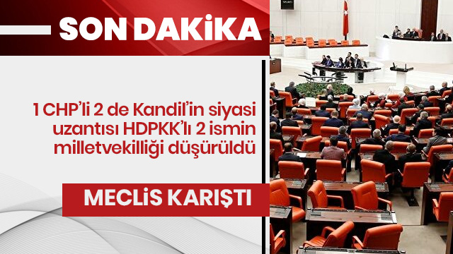 Gelen son dakika haberine göre; CHP Milletvekili Enis Berberoğlu, HDP'li Leyla Güven ve Musa Farisoğulları'nın milletvekillikleri düştü. Karar TBMM'de okundu. CHP ve HDP'li milletvekilleri sloganlar atarak, masalara vurarak karara tepki gösteriyor.