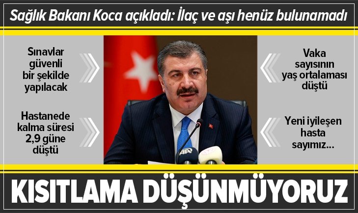 Son dakika haberi...  Toplantısı ardından basın karşısına geçen , sokağa çıkma kısıtlaması hakkında çarpıcı açıklamalarda bulundu. Sağlık Bakanı Koca,  salgınına karşı henüz bir ilaç ve aşının bulunamadığını da aktardı.