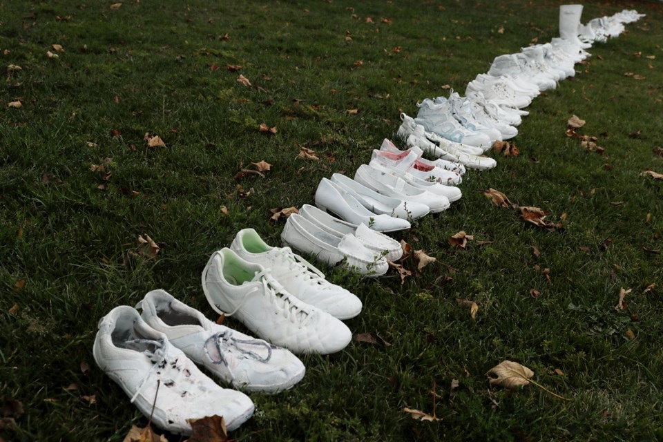 Bir kilisenin önüne hayatını kaybedenleri için birer çift beyaz ayakkabı da bırakıldı.