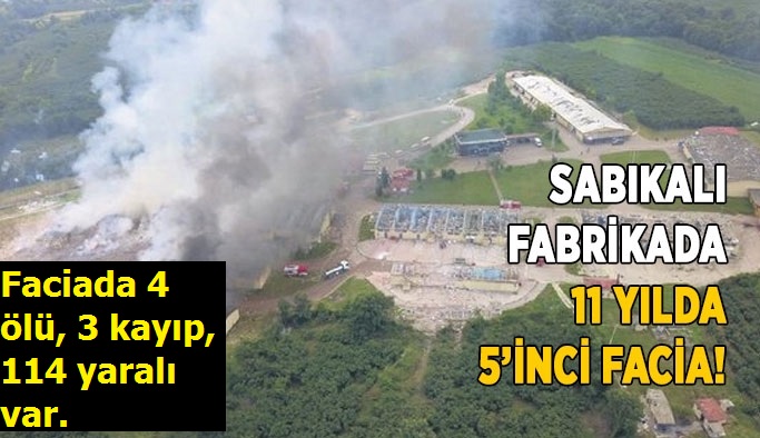 Sakarya Hendek’teki Büyük Coşkunlar Havai Fişek Fabrikası’nın deposunda dün art arda şiddetli patlamalar meydana geldi. Faciada 4 ölü, 3 kayıp, 114 yaralı var. Fabrikada son 11 yılda 5’inci patlamanın yaşanması akıllarda soru işaretleri bıraktı