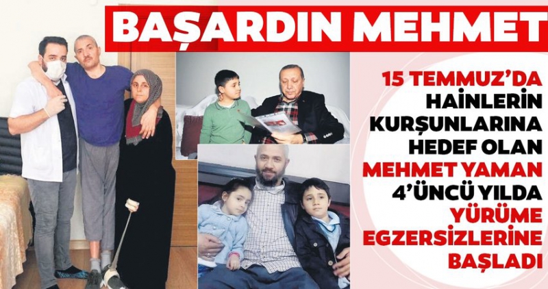'nün darbe girişiminin üzerinden 4 yıl geçti ama  gazisi Mehmet Yaman'ın hayat mücadelesi bitmedi. 'Yaşamaz' denilen ancak yaşama tutunmak için inadına hayata sarılan gazi, önce dimdik ayağa kalkmayı başardı. 15 Temmuz gazisi Mehmet Yaman bir yılda çifte mucizeye imza attı. Kahraman gazi artık hem konuşmaya hem de adımlarını çoğaltmaya başladı.