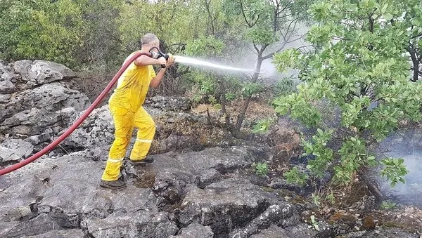 Dağlık alandaki 20 hektara yakın bir arazide etkili olan yangına, arazinin sarp yapısı nedeniyle müdahalede zorluklar yaşandı.