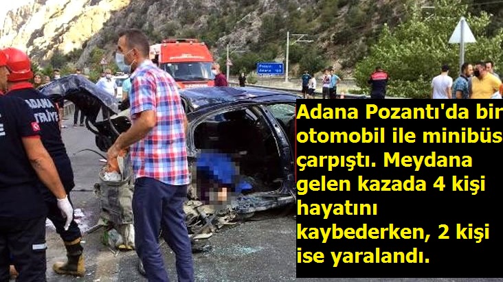 Adana Pozantı'da bir otomobil ile minibüs çarpıştı. Meydana gelen kazada 4 kişi hayatını kaybederken, 2 kişi ise yaralandı. Yaralılar çevredeki hastanelere kaldırılarak tedaviye alındı.