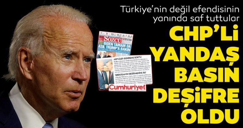 Yıllarca dış güçlerin Türkiye operasyonlarına haberleriyle destek veren CHP medyasının; eski ABD Başkan Yardımcısı ve 3 Kasım seçimlerinde Demokrat Parti'nin başkan adayı Joe Biden'ın Türkiye'de Başkan Recep Tayyip Erdoğan'a karşı muhalifleri desteklemeleri gerektiğine yönelik skandal sözlerini eleştirmemesi ve görmezden gelmesi dikkat çekiyor.