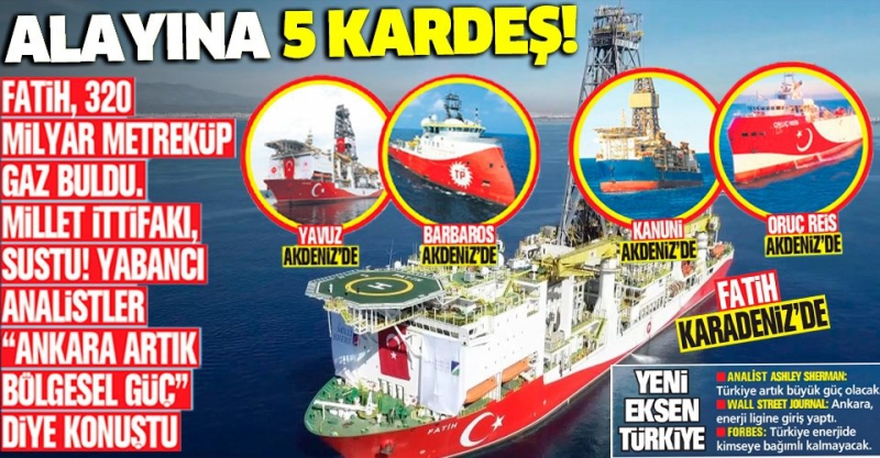 Fatih, 320 milyar metreküp gaz buldu. Millet ittifakı, sustu! Yabancı analistler "Ankara artık bölgesel güç" diye konuştu.
