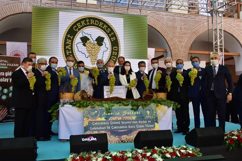 2020-2021 yılı Manisa Sultani Çekirdeksiz Üzüm Sezonu Açılışı ve Geleneksel İlk Çekirdeksiz Kuru Üzüm Satış Töreni, Tarım ve Orman Bakanı Bekir Pakdemirli’nin Giresun’dan canlı yayın ile katılmasıyla açıklandı.