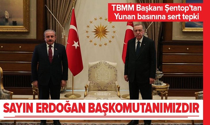 Başkanı Prof. Dr. , Yunan basınının Başkan Erdoğan hakkında kullandığı alçak ifadelere tepki gösterdi. Türkiye'nin haklı davasında devam edeceğini belirten Türkiye Büyük Millet Meclisi Başkanı Şentop yaptığı açıklamada, "Sayın , Türkiye ; Başkomutanımızdır." ifadelerine yer verdi.TBMM Başkanı Mustafa Şentop'tan Yunan basınına tepki Başkan Erdoğan'a destek