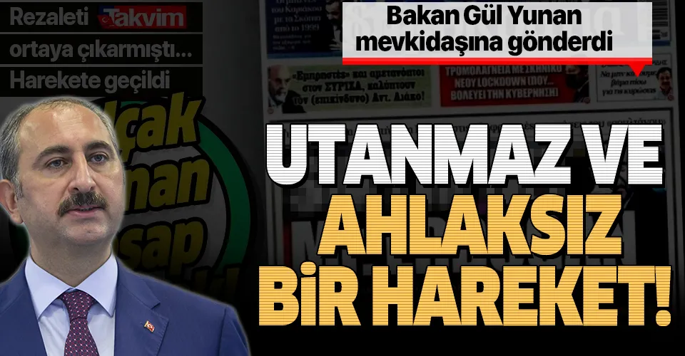 Adalet Bakanı Gül, Dimokratia gazetesinin Erdoğan'a hakaret içeren manşetinden dolayı Yunanistan Adalet Bakanı Tsiaras'a mektup gönderdi.