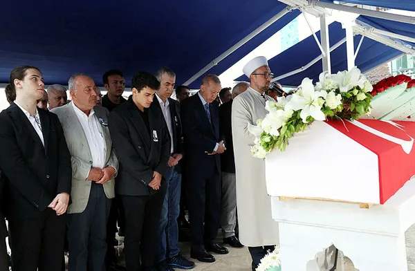 Cumhurbaşkanı Erdoğan, Barbaros Hayrettin Paşa Camisi'nde öğle vakti düzenlenen cenaze törenine Dışişleri Bakanı Hakan Fidan ile geldi.