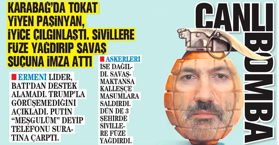 Cephede bozguna uğrayan Ermenistan, sivillere saldırmaya devam ediyor. Ülkenin ikinci büyük kenti Gence ile Terter, Ağdam, Ağcebedi, Beylegan, Göygöl, Berde ve Goranboy illerinin merkezleri ve bazı köyleri yoğun top atışıyla saldırıya uğradı. Gence'ye önceki gece ikinci kez saldıran Ermenistan'ın fırlattığı bir roket bir alışveriş merkezine düştü. Ermenistan bugüne kadar 27 sivili katletti.