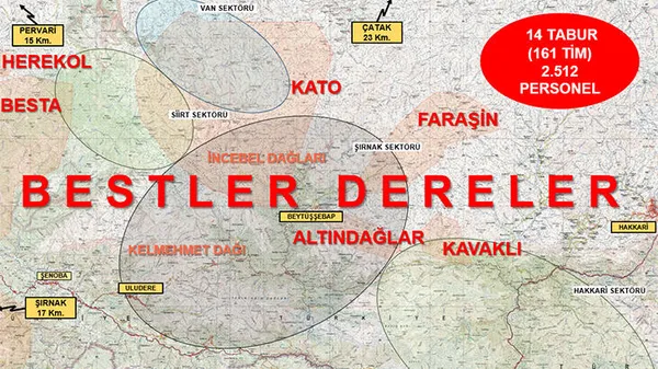 "Bölücü teröre örgütünün kış öncesi hareket kabiliyeti ve barınma arayışını bertaraf etmek, ülke içinde iletişimi ortadan kalkan örgütün bu kabiliyetini bir daha elde edememesini sağlamak ve ülke içindeki terörist varlığını tamamen bitirmeye yönelik Şırnak-Siirt-Van-Hakkari illerinde "YILDIRIM-13 BESTLER DERELER" Operasyonu başlatılmıştır.