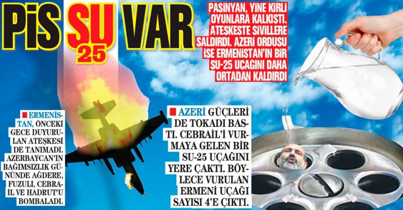 Paşinyan, yine kirli oyunlara kalkıştı. Ateşkeste sivillere saldırdı. Azeri ordusu ise Ermenistan'ın bir Su-25 uçağını daha ortadan kaldırdı.