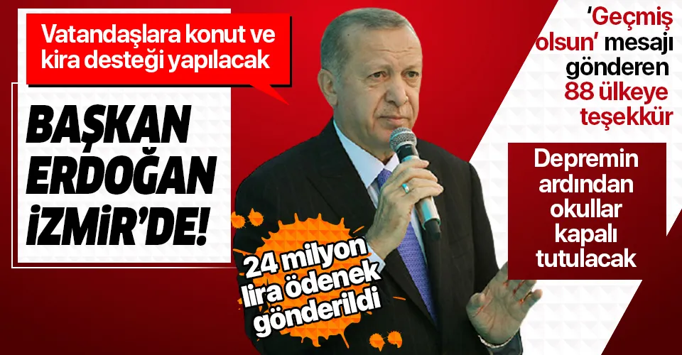 İzmir'de bir hafta süreyle eğitim öğretime ara verilmesi kararı alındığını, konuyla ilgili gereken açıklamayı Milli Eğitim Bakanı Ziya Selçuk'un yaptığını anımsatan Erdoğan, yaşanan artçı depremlere de işaret ederek, sonrasında durumun ne olacağına ilişkin "Bir hafta sonra Milli Eğitim Bakanlığımız gerekli değerlendirmesini yapmak suretiyle eğer uzatmak gerekirse uzatılabilir, 'gerek yok eğitime devam edelim' denirse eğitime devam ederiz." açıklamasında bulundu.