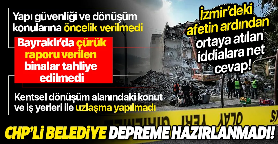 İzmir merkez üssü Seferihisar açıkları olan 6.6 büyüklüğündeki depremle sarsıldı. Depremin ardından yaralar sarılmaya devam ederken ortaya çeşitli iddialar atıldı ancan CHP'li İzmir Büyükşehir Belediyesi'nin İzmir’in deprem kuşağında yer almasına rağmen, yerel yönetim planları arasında yapı güvenliği ve dönüşüm konularına öncelik vermediği ortaya çıktı. İşte İzmir'de depremin ardından ortaya atılan 11 iddiaya ilişkin 11 cevap...
