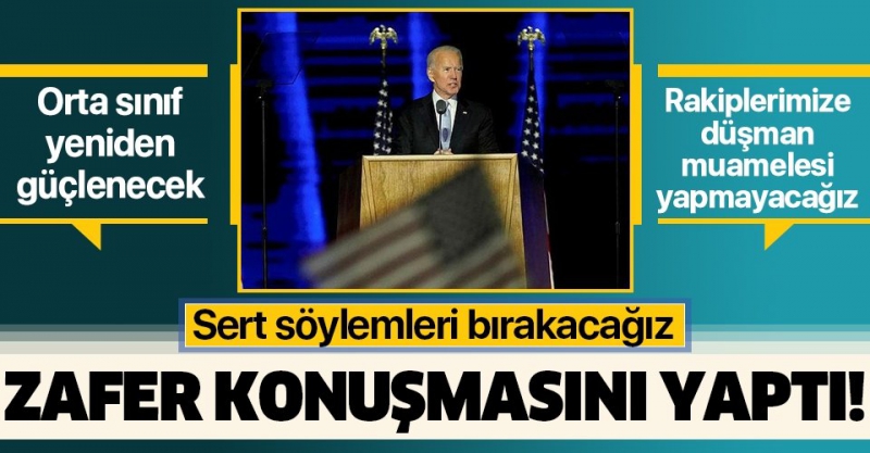 Biden'dan zafer konuşması! Trump'ı anlıyorumSON DAKİKA HABERİ... ABD'nin yeni başkanı Joe Biden, Delaware kentinde zafer konuşması yaptı. Biden, "İşte şimdi işte Amerika'nın iyileşme dönemi geliyor. Çağımızın savaşlarıyla savaşmak için, refah, virüse karşı savaş, ırkçılık karşısında vermemiz gereken savaş ve gezegenimizi kurtarma savaşı. Haysiyeti geri getirme, demokrasiyi koruma savaşı, herkese adil bir şans verme savaşı" dedi.