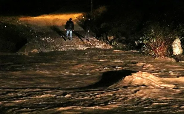 Olay, gece saatlerinde Menderes ilçesine bağlı Dereköy Mahallesi mevkisinde meydana geldi. İddiaya göre, sürücüsü henüz öğrenilemeyen hafif ticari araç, sağanak yağışın etkisiyle oluşan ve karayolunu ortadan ikiye bölen sel sularının üzerinden geçmeye çalıştı.